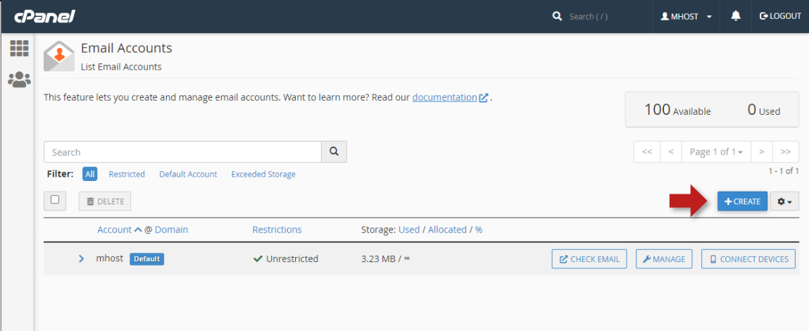 Your mail box is ready, you can access your mailbox to read and send messages using webmail or using mail client like Outlook.