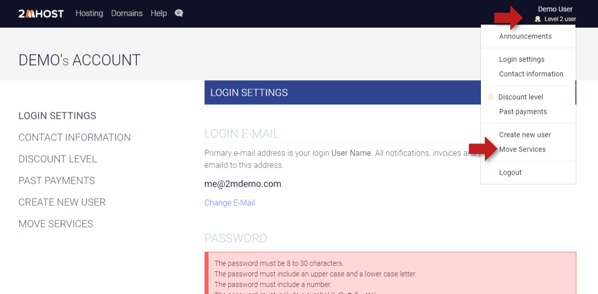You can move services (hosting accounts, domain names) between users from your admin area > profile menu > Move Services: