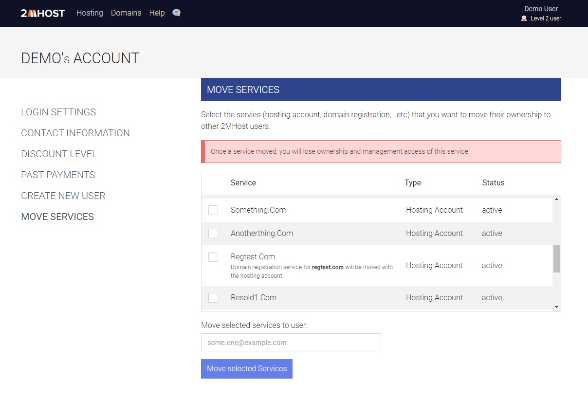 Important: once the service gets moved, you will lose access to it, each service can be managed only by a single user.