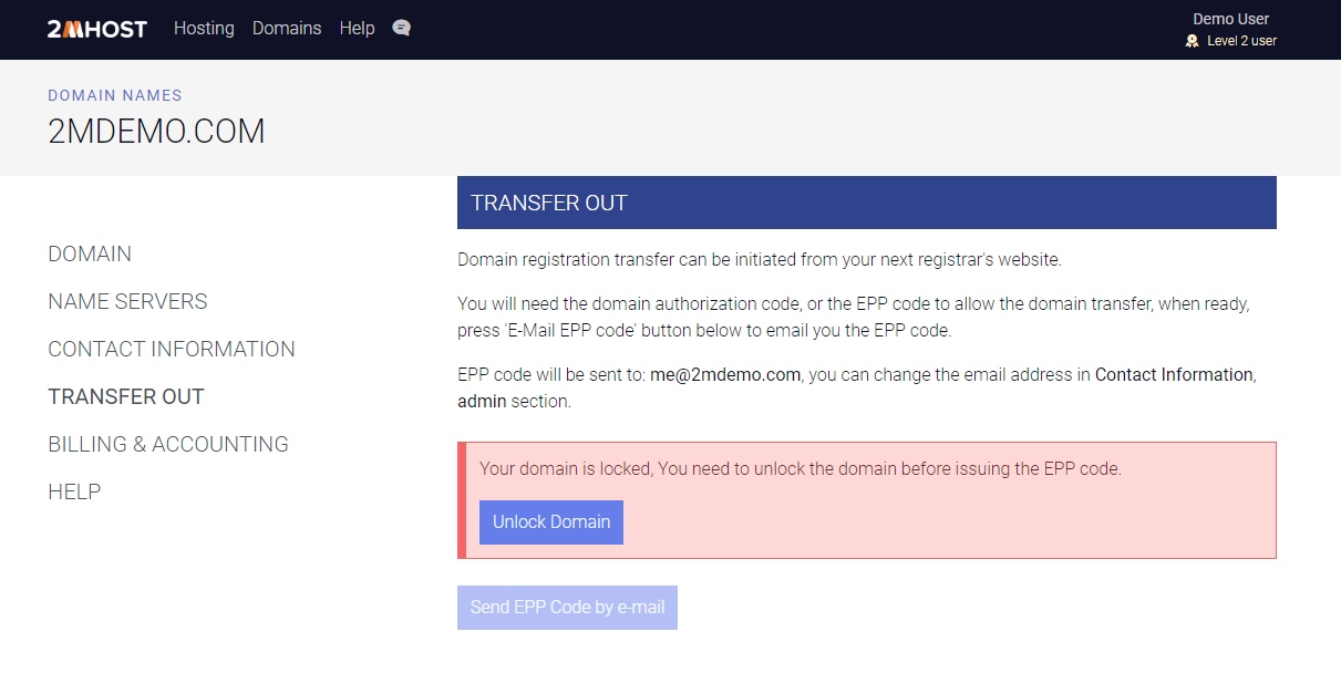 (2) 60 days must have passed since the last domain transfer. Only after this 60-day period can you initiate a domain transfer. This is a standard industry requirement to prevent domain name hijacking and ensure domain stability. Once again, this is how domains work, not a 2MHost policy.