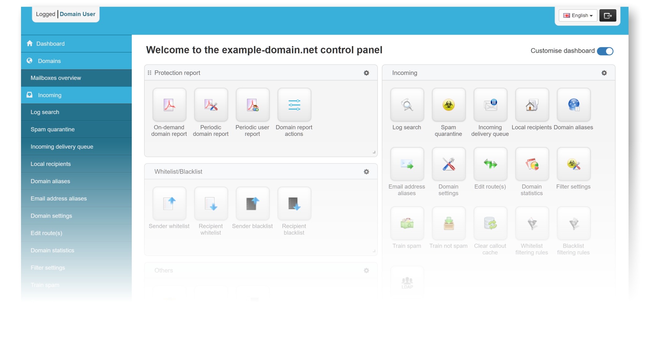 SpamExperts offers a wide set of tools to manage the filter, including attachment management, white-listing, and blacklisting tools.